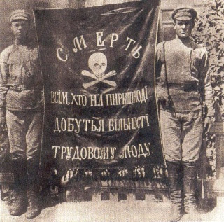 Pour mémoire, cet anarchiste originaire de Goulaï-Polié, fut l'âme d'un soulèvement mené par l'Armée Insurectionnelle*** qui combattit coup sur coup les occupants Allemands, Autrichiens, nationalistes ukrainiens, pogromistes divers, armées blanches de Denikine puis Wrangel et furent finalement trahis par l'Armée Rouge de Trotsky qui les extermina non sans leur tailler par la suite une réputation calomnieuse d'antisémites**** pour la postérité.